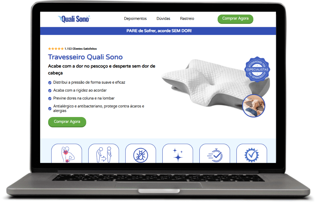 O travesseiro cervical ergonômico Quali Sono foi projetado para se adaptar a todos os tipos de corpo. Seu design visa o alinhamento ideal das vértebras cervicais, alivia a tensão e melhora a qualidade do sono, noite após noite.